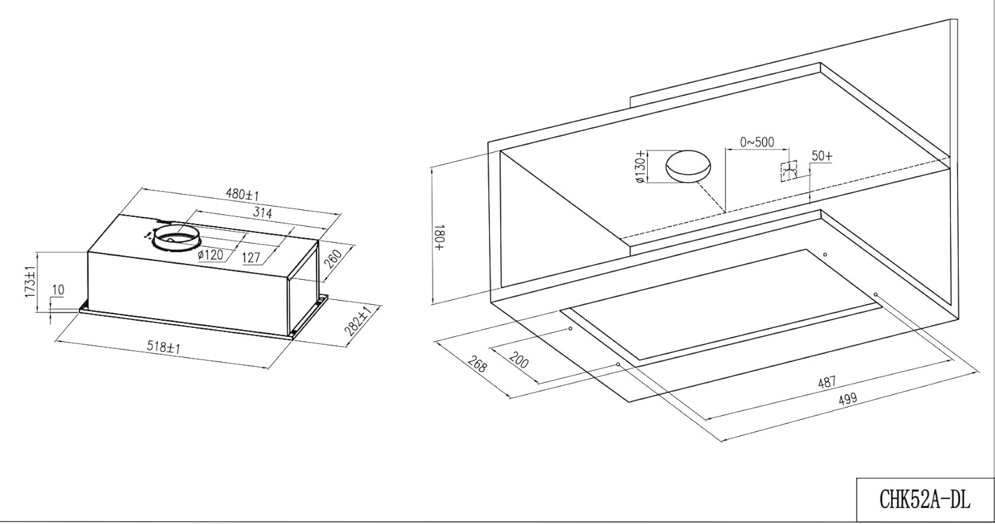 - Tamaño campana extractora (Alto x Ancho x Fondo): 17,3 x 52 x 28 CM.