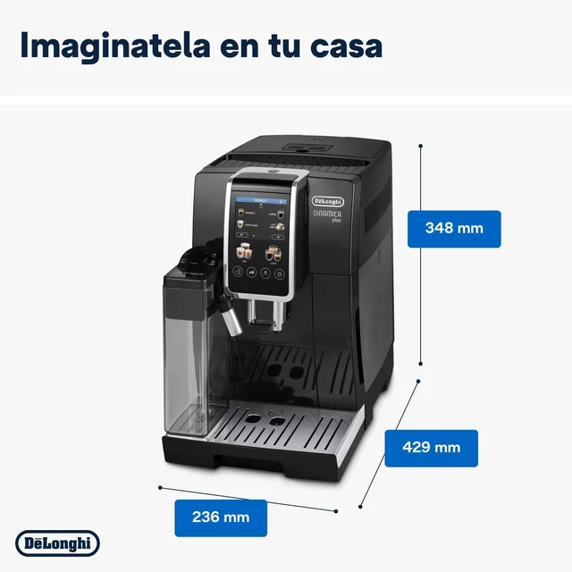 Cafetera automática DeLonghi Dinamica Plus. – Color negro. – Pantalla táctil a color. – Depósito de leche integrado. De’Longhi Dinamica Plus ECAM382.70.B, Máquina Automática de Café en Grano, Máquina Cappuccino con LatteCrema Hot, Cafetera Espresso, Taza con 18 Recetas, Pantalla TFT 3,5”, 1450W, Negro