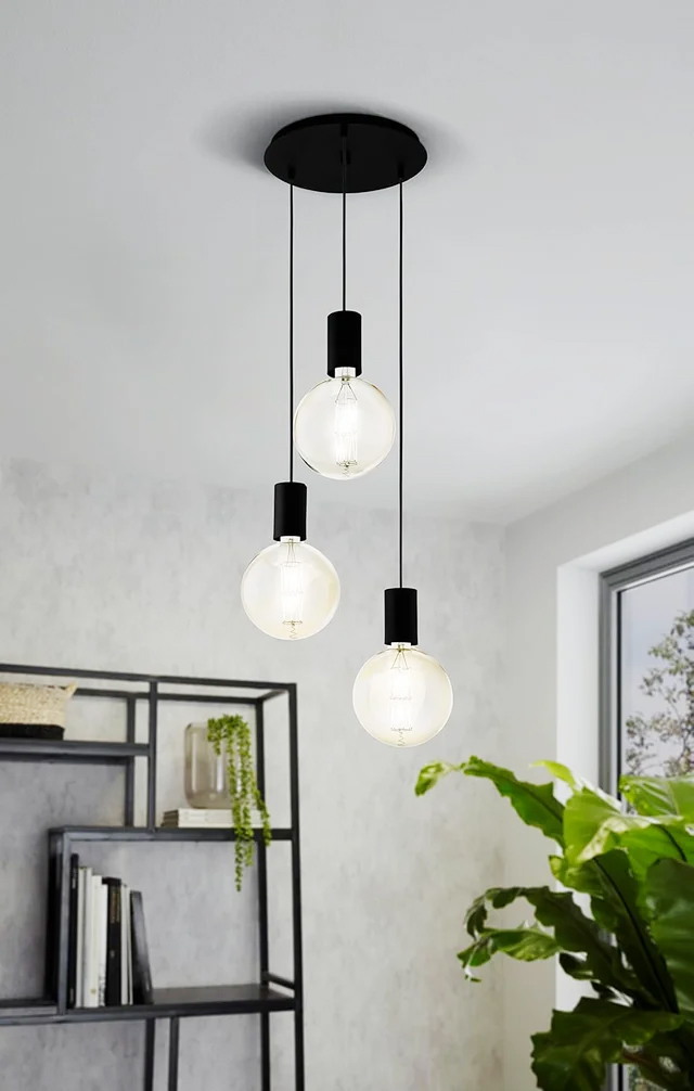 - La lámpara colgante decorativa de acero en negro se adapta adecuadamente a las tendencias como vintage, industrial y moderno